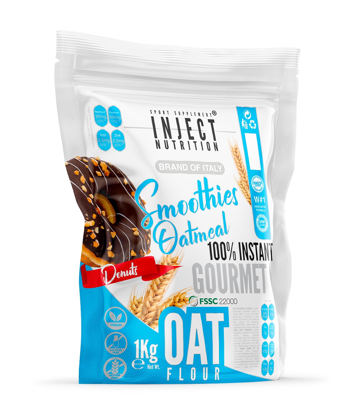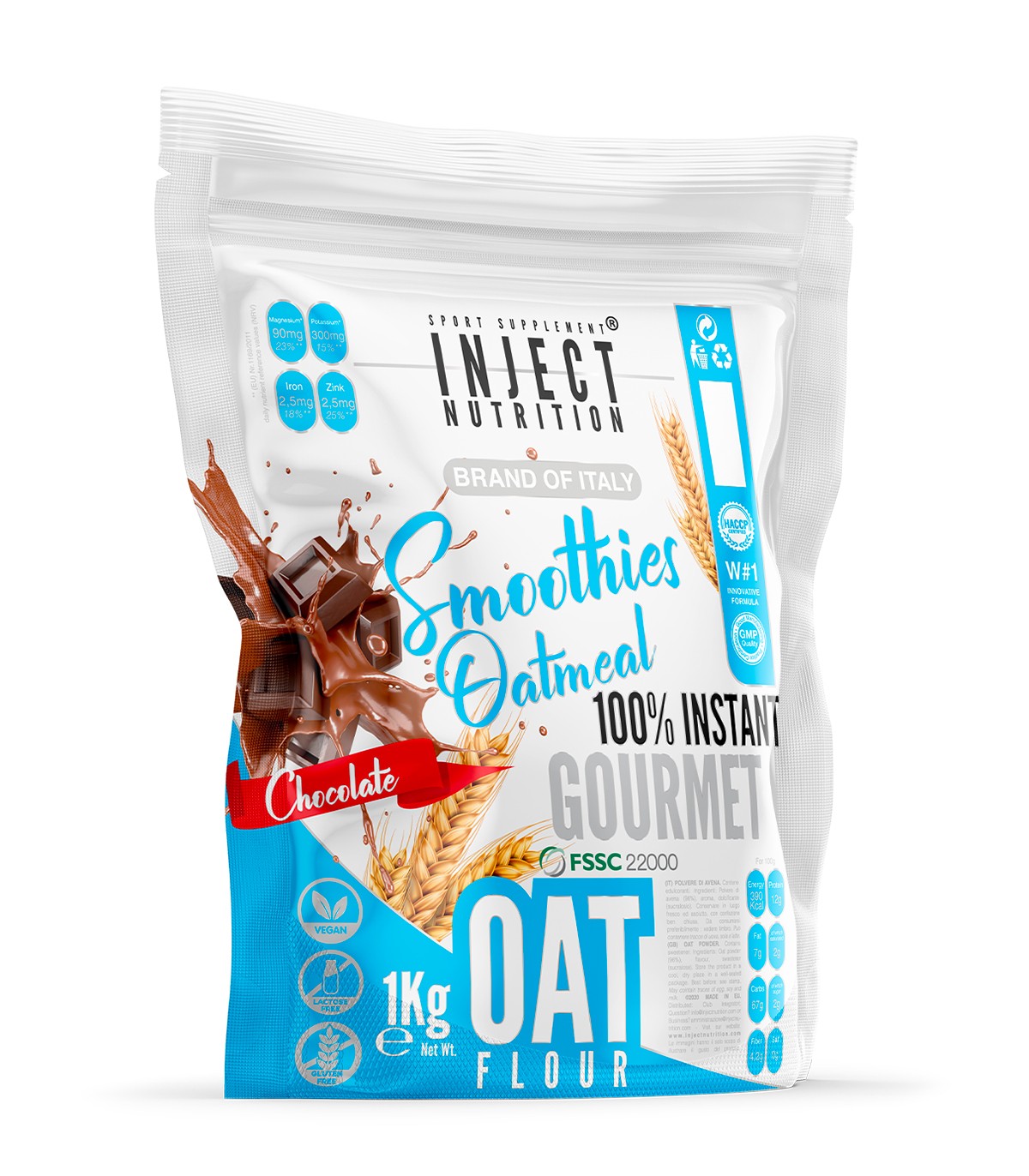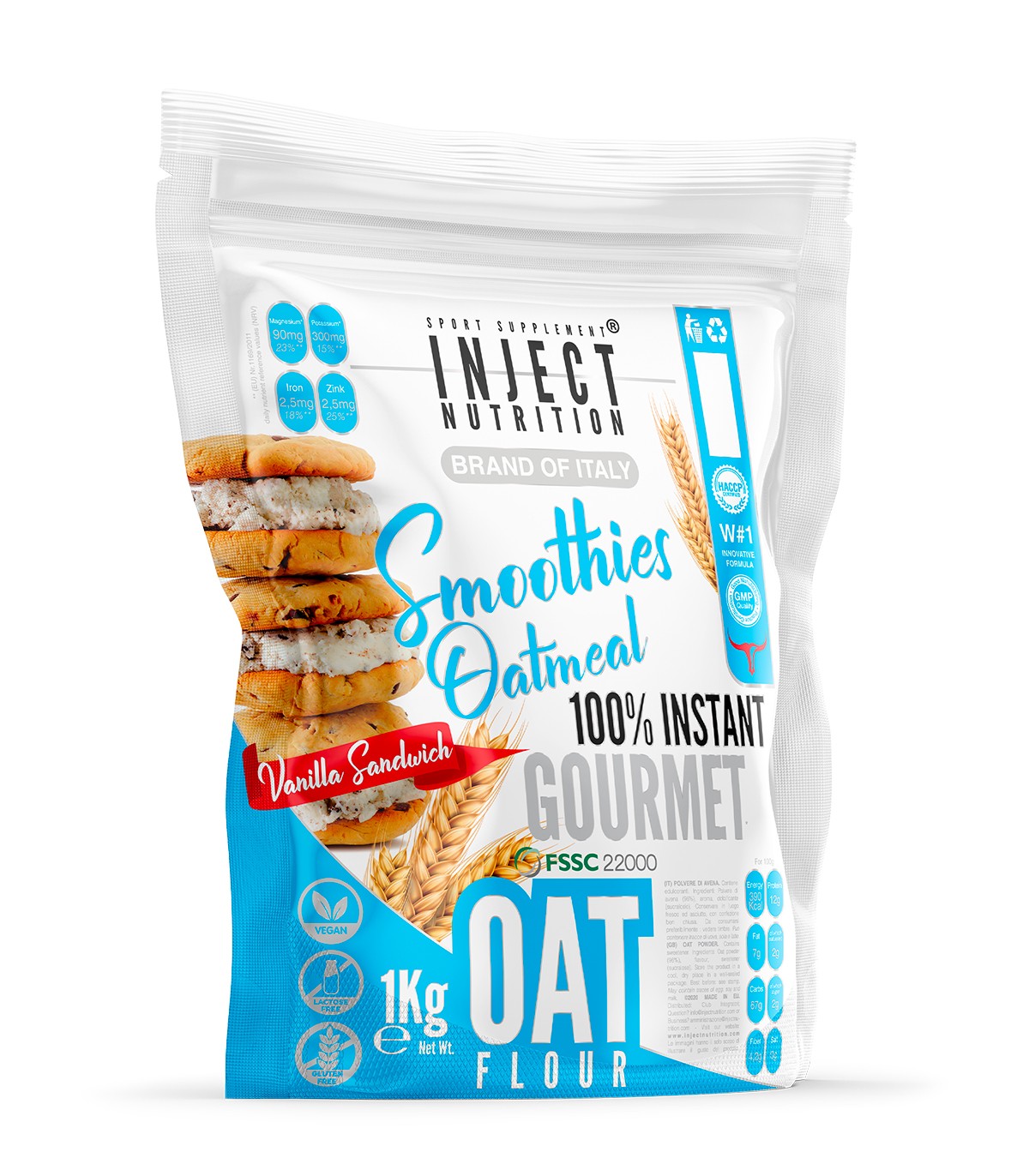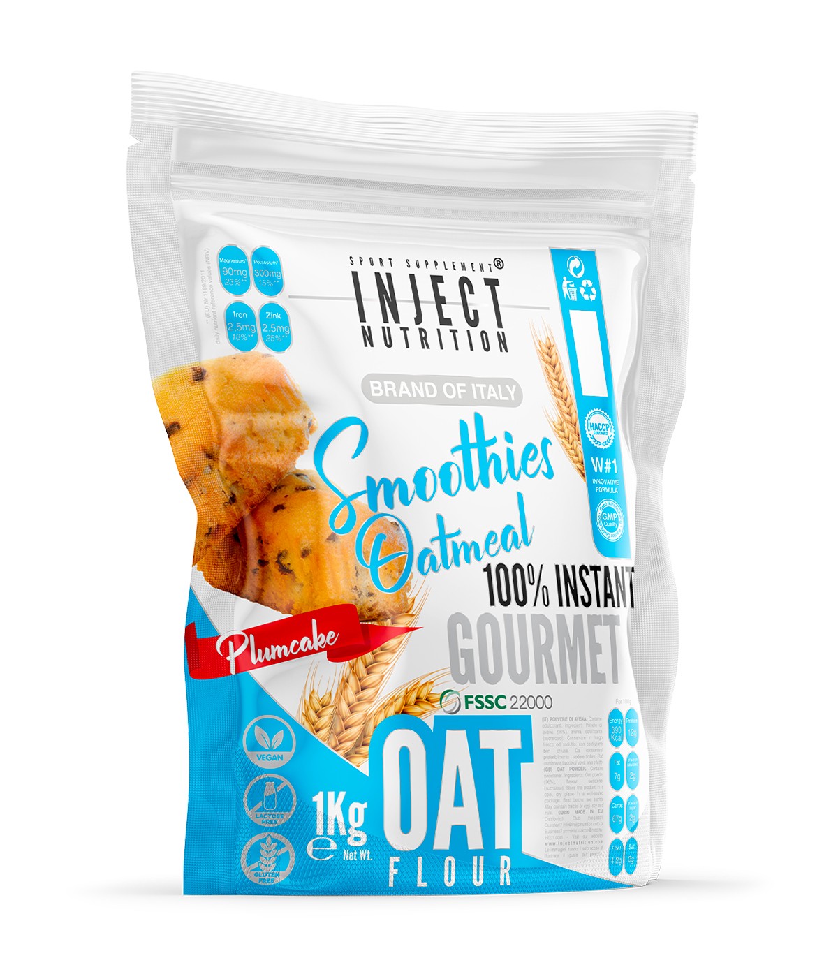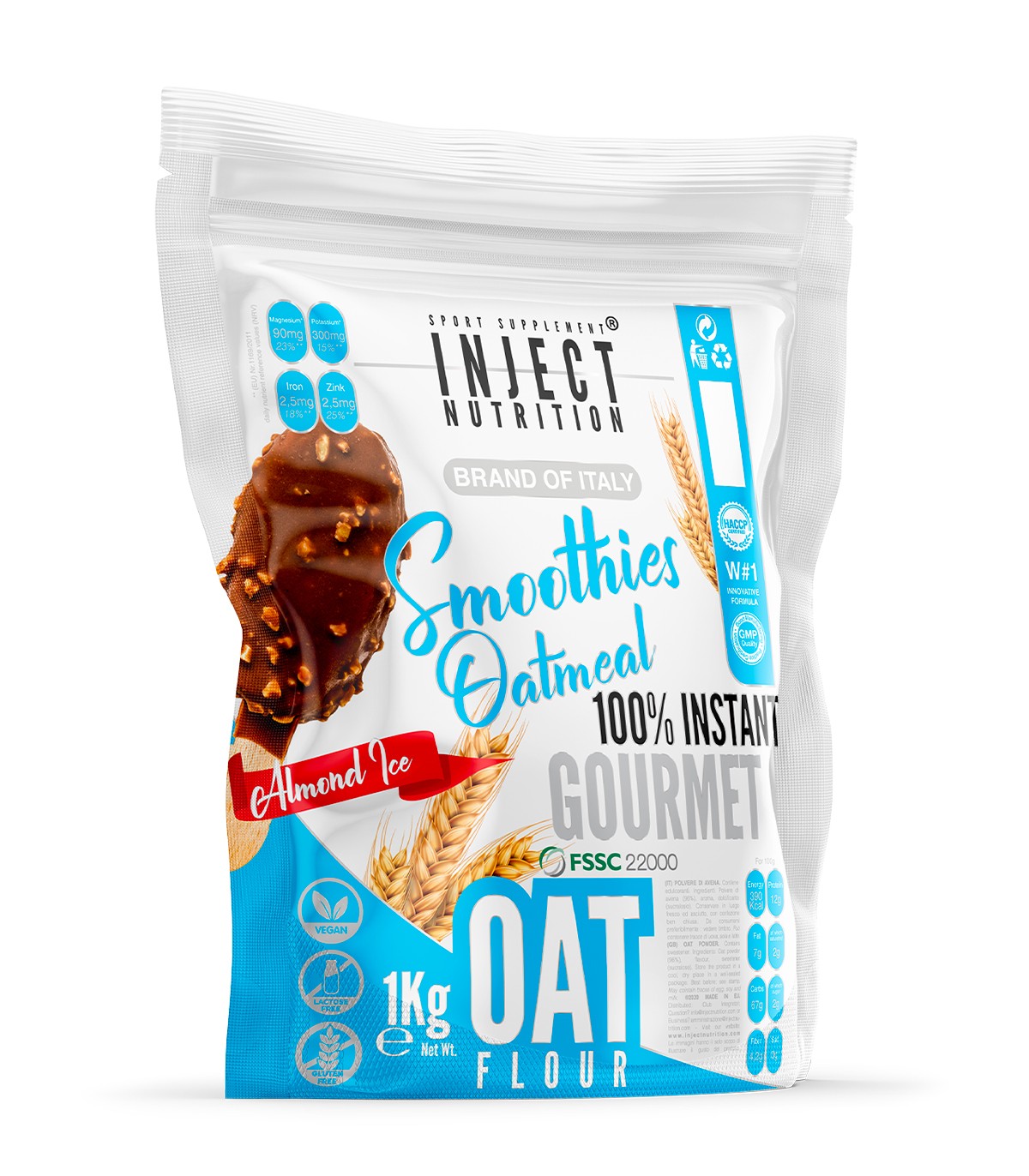 Smoothies Oatmeal di Inject Nutrition® è un integratore alimentare in polvere a base di farina d'avena istantanea, con aggiunta di betaglucani e polifenoli.