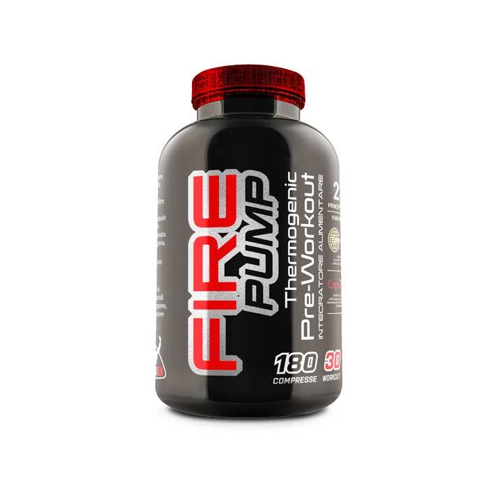 INGREDIENTI FIRE PUMP COMPRESSE :L-Arginina Alfachetoglutarato, Cellulosa microcristallina E 460 (i), Calcio HMB, Taurina, Carnitina Booster™ (Acetyl-L-Carnitina HCL, Propionyl-L-Carnitina HCl), L-Tirosina, pH Balance ™(Silicio Biossido E 551, Potassio Cloruro, Sodio Bicarbonato), Careflow® mango polvere(Mangifera indica L., frutto), Colina Bitartrato, L-Citrullina DL-Malato, Magnesio Stearato E 572, Polivinilpirrolidone E 1201, L-Istidina HCL, Betaina Anidra, Berberina ES (Berberis Aristata, corteccia) Schisandra ES (Schisandra chinensis ES Tit. 1%, frutti), Caffeina anidra, Tè Verde ES (Camellia sinensis Es Tit al 70 % in polifenoli, foglie), Teobromina, Capsifen® ES di peperoncino (Capsicum annum L, frutti), Citrus Aurantium ES (Citrus Aurantium ES tit. al 10 % in sinefrina, scorza del frutto), Calcio pantotenato (Vit. B5).