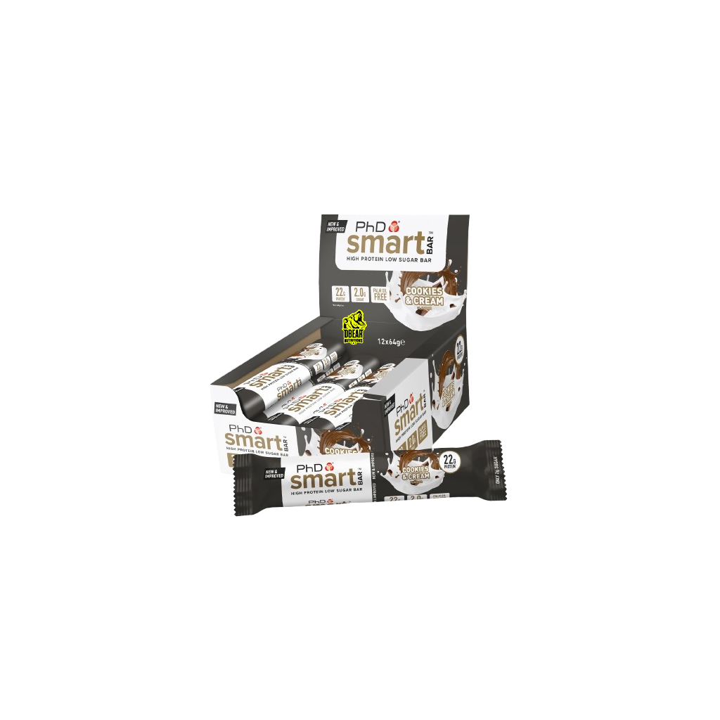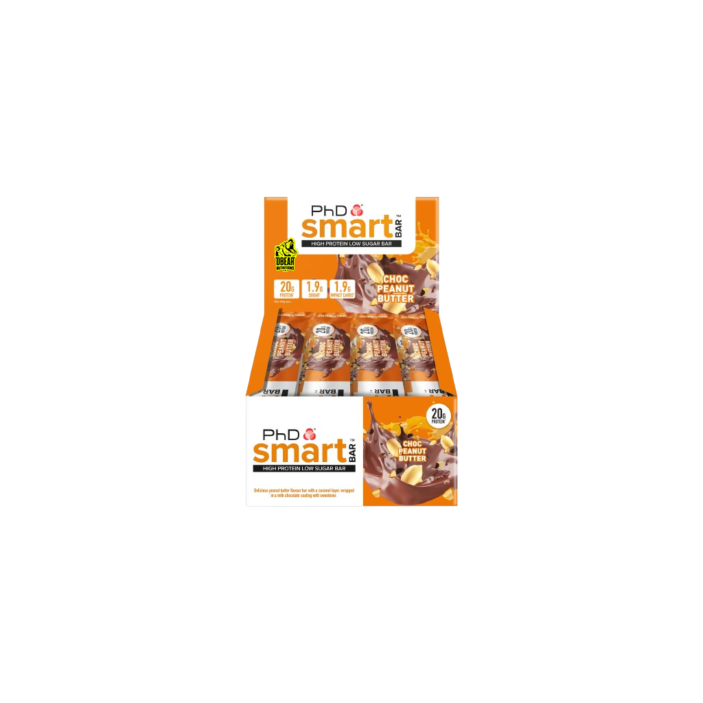 La SmartBar è la nuova barretta proteica, a basso contenuto di zuccheri, sviluppata dal laboratorio inglese PhD Supplements. Questa barretta è ricoperta da un triplo strato di caramello, scaglie di cacao croccanti e un rivestimento di cioccolato.
